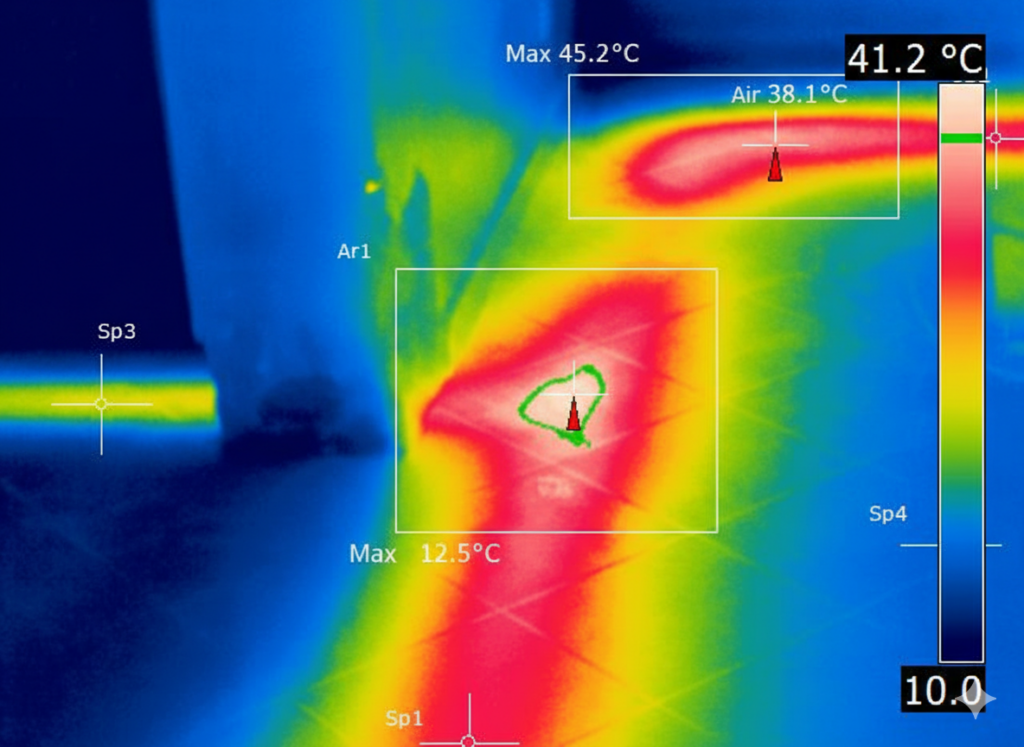 Kamera termowizyjna wykrywa różnice temperatur wskazujące obecność wody. Bezinwazyjna i szybka – sprawdza się w ścianach, sufitach i pod posadzką. Szczególnie skuteczna przy instalacjach grzewczych i ogrzewaniu podłogowym.